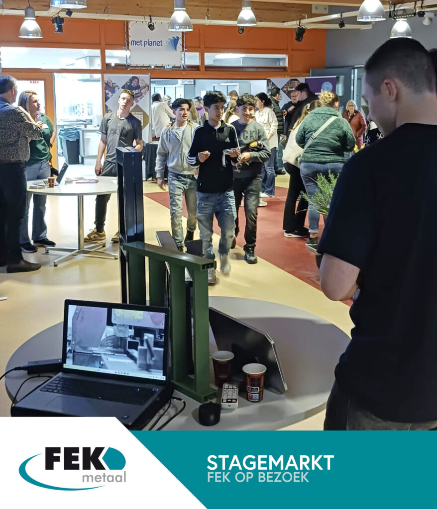In de week van 20 april vond de stagemarkt van MET Praktijkonderwijs Waalwijk plaats. Onze collega’s Leon Bool, owen van Strien en Bodie Timmermans waren hierbij aanwezig om FEK Metaal aan de regio te presenteren. Als erkend leerbedrijf biedt FEK Metaal stages en BBL-trajecten aan voor enthousiaste leerlingen en zij-instromers. Hierbij vinden we het belangrijk om sociaal maatschappelijk betrokken te zijn in de regio Waalwijk.