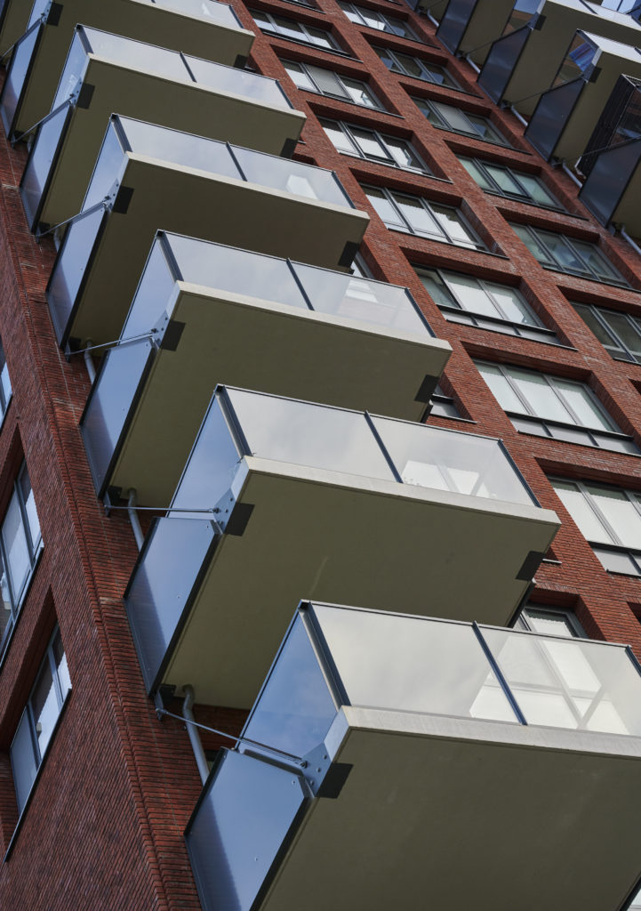 Op dit grote nieuwbouw project heeft FEK Metaal alle balkonhekken mogen plaatsen. Verdeeld over drie torens zijn aluminium glashekken gemonteerd, gevuld met helder glas. Bijzonder aan dit project is de afwerking van de zijkanten van de balkons. Hier lopen de hekwerken in aanzicht over van een glashek in een gezette staalplaat. Dit om een industriƫle look te creƫren.